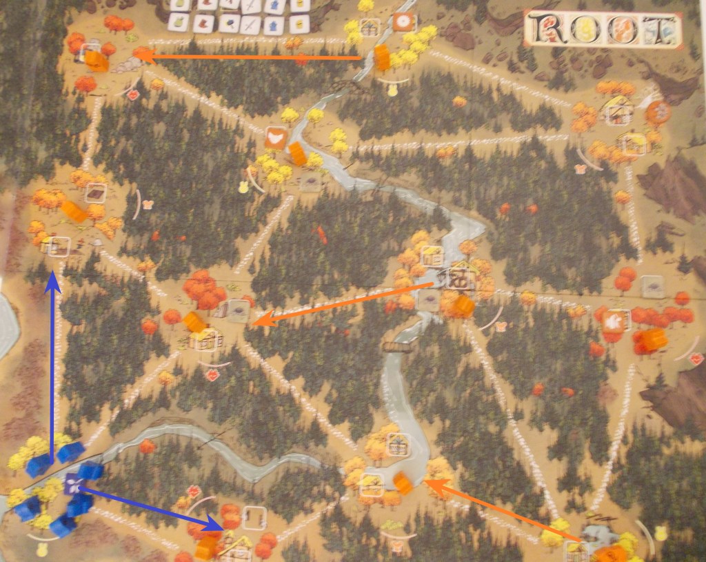 Questa prima partita a Root mi ha davvero conquistato e non vedo l’ora di reintavolarlo. Già adesso ho iniziato a comprendere i meccanismi strategici che animano le due fazioni che ho visto in questa partita. Se da una parte la Marchesa deve cercare di puntare tutto sulla costruzione di edifici e quindi il consolidamento della sua posizione nelle radure a difesa di essi, le Aquile devono cercare di espandersi in fretta proprio per cercare di non lasciarglielo fare; certo, in questa partita l’utilizzo della carta dominio da parte di Gege ha ridirezionato i suoi obiettivi in maniera totalizzante, ma il succo della pianificazione dei gatti rimane quello. La Dinastia delle Aquile è ovviamente la fazione più strategica del gioco, dato che a causa del meccanismo del Decreto, la pianificazione è essenziale, anche se altrettanto ovviamente più si va avanti con la reggenza di un leader, più si accumulano ordini nel decreto, più è difficile farli tutti, più è difficile evitare una insurrezione… insomma, tanta carne al fuoco, tante idee che mi frullano in testa per il blog su questo Root… ne vedrete delle belle!