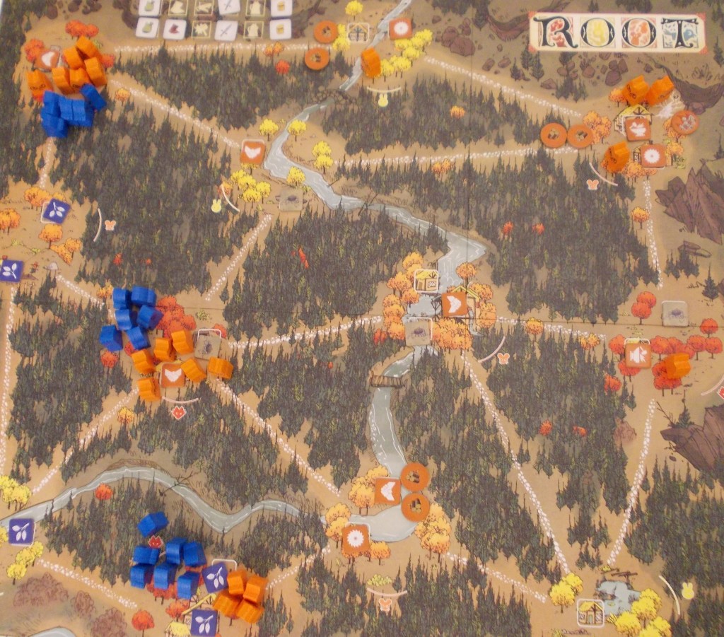 Nonostante una rivincita pendente a Polis mi spettasse per onor di cavalleria (greca) dopo questa partita, ieri sera Eugenio ed io, dopo una bella partita ad Ankh, decidiamo di concludere la serata provando ad intavolare Root in maniera seria per la prima volta dopo qualche partita di prova della settimana precedente per studiare le regole.