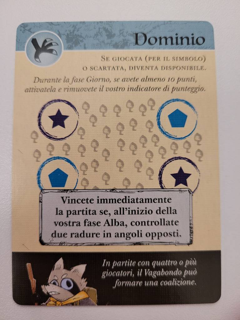 Questo Root si conferma un gioco divertente e fenomenale: non vedo l’ora di reintavolarlo ancora, anche perché dobbiamo ancora vedere una fazione, anzi, un personaggio: il Vagabondo! E se ne vedrà delle belle!
