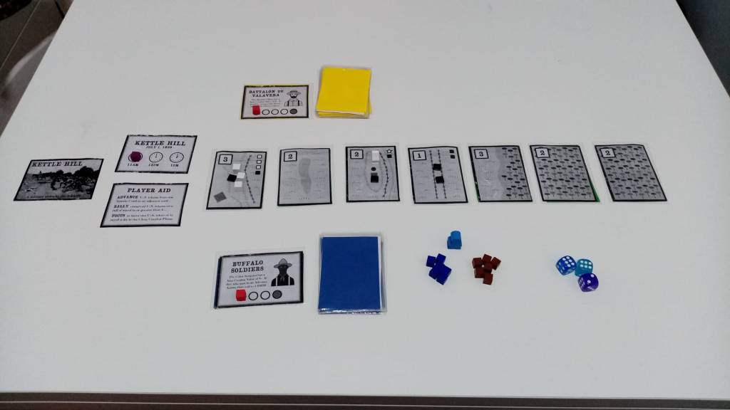 Questo Kettle Hill è l’esempio di come con poche regole, qualche carta e qualche cubetto di legno si possa creare un gioco dalla grande narrazione, capace di creare momenti di esaltazione o disperazione. Non si tratta di una simulazione ma di un vero e proprio gioco narrativo e se riusciamo a effettuare quel piccolo salto di immedesimazione e giocare di ruolo, in poco meno di un’ora questo titolo print&play gratuito riuscirà ad ammaliarci.