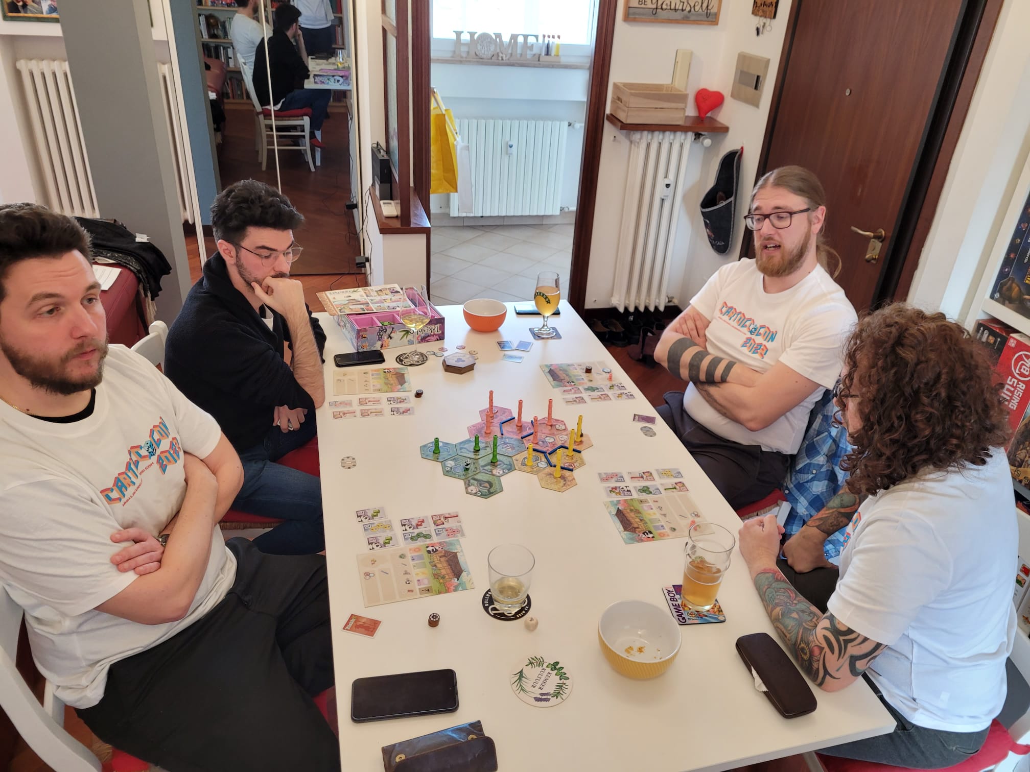 Infine voglio ringraziare i nostri vicini, anche se non leggeranno mai questo articolo, perché hanno sopportato due giorni interi di sedie strisciate sul pavimento, bestemmie per un tiro venuto male, risate e chiacchiericcio infernale, insomma, tutto quello che solo una piccola, grande con di giochi da tavolo può regalare.