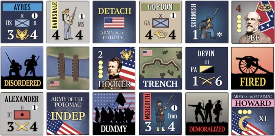 Il sistema di gioco sembra simile a quello di Radeztky’s March, altro titolo di Dissimula firmato da Sergio, che ci spiega: “il sistema è lo stesso di RM, con qualche sostanziale modifica: ad esempio, non c’è più la CRT e l’artiglieria può bombardare. Si tratta di un gioco abbastanza semplice in termini di regole ma sfidante per entrambi i giocatori, Ha un meccanismo di attivazioni alternate, quindi è sempre imprevedibile. Prima devi decidere cosa mettere nel contenitore della pesca, turno dopo turno; non sempre puoi attivare, specialmente l’Unione, tutto quello che ti serve. Devi fare delle scelte. Questo, unito all’imprevedibilità delle attivazioni, crea un mix interessante: l’attivazione casuale è l’aspetto davvero divertente del gioco, alle volte ti capitano cose assurde e quindi, a mio avviso, ricrea piuttosto bene la confusione sul campo di battaglia”. Personalmente adoro il sistema di attivazione con la pesca delle chit, credo che davvero unisca la possibilità di simulare la nebbia di guerra all’imprevedibilità tipica del campo di battaglia che da sempre caratterizza gli scontri tra eserciti.