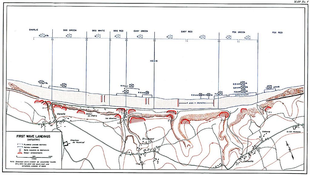 1450 arrivarono in quell’inferno durante la prima ondata, in teoria aiutati da un nutrito numero di corazzati, che però con molta difficoltà raggiunsero la spiaggia. Le squadre del genio, che dovevano aprire varchi negli sbarramenti per i carri, raggiunsero la spiaggia nei punti sbagliati, e subirono perdite altissime nella prima mezzora di lavoro (il 41% di uomini).