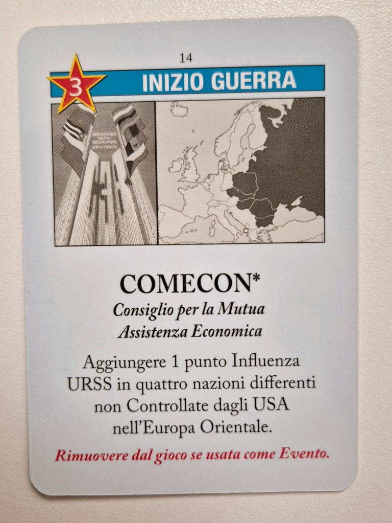 Come URSS 3 punti OPS fanno più gola dell’evento, a dire la verità. Si tratta pur sempre di mettere un misero punticino in 4 stati in Europa Orientale, cosa che può servire si a neutralizzare eventuali scomode presenze americane, ma che in realtà in termine di efficienza serve a poco. Meglio sfruttare i 3 OPS e mandare la carta al rimescolo del turno 3.