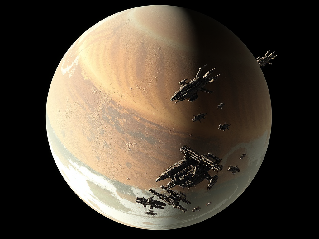 In orbita intorno al pianeta fluttua da tempo immemore un gigantesco cimitero di vascelli spaziali, simulacro di una imponente battaglia combattuta qui ai tempi della dominazione xeno del sistema. Sono stati censiti 16 relitti di dimensioni colossali, oltre a un nugolo di navi e detriti minori. Anche qui i devoti dell’Omnissiah inviano spedizioni spaziali alla ricerca di Archeotech alla ricerca di tecnologia e conoscenze perdute.